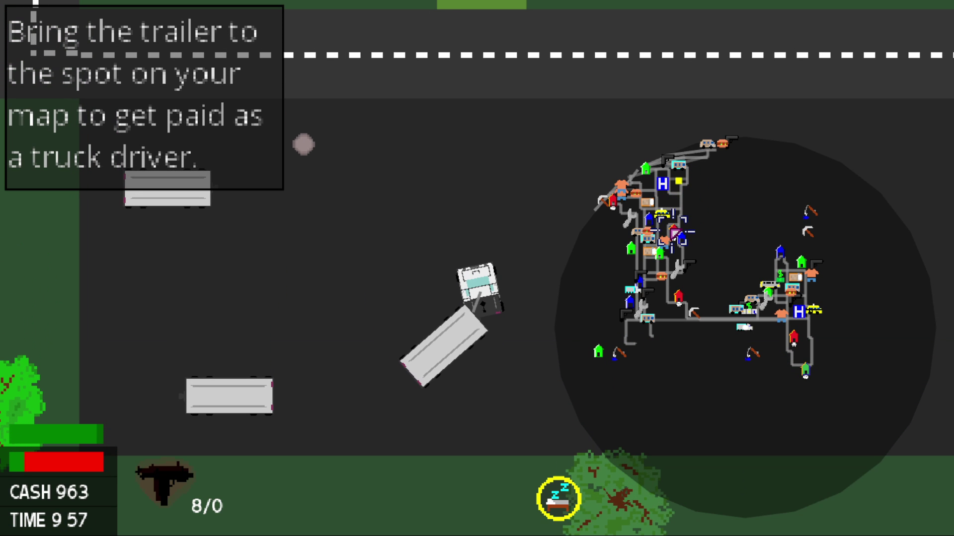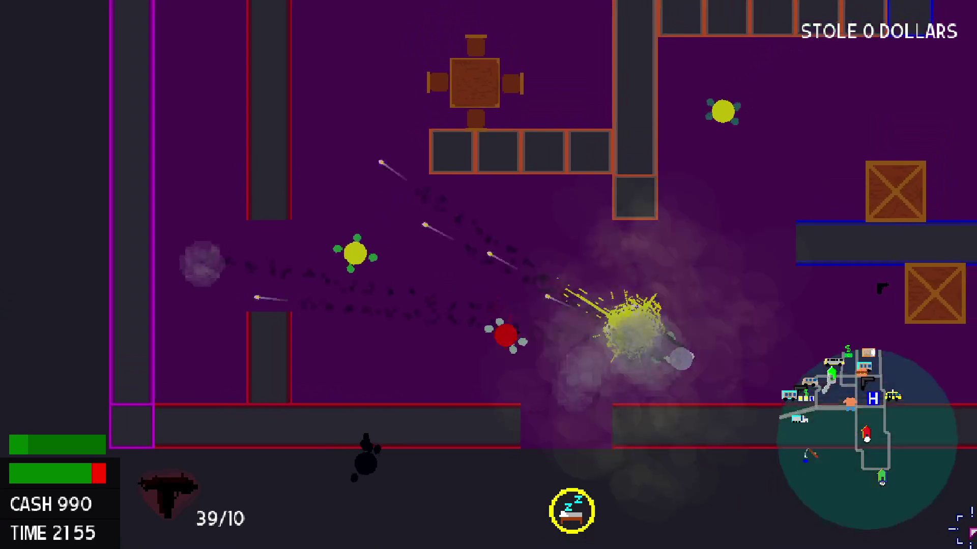 This is a crime sandbox game in 2D top down view where there are no real limits and you can do a wide variety of jobs and activities. 99% of buildings are enterable. Cause as much chaos, or not, as you want!